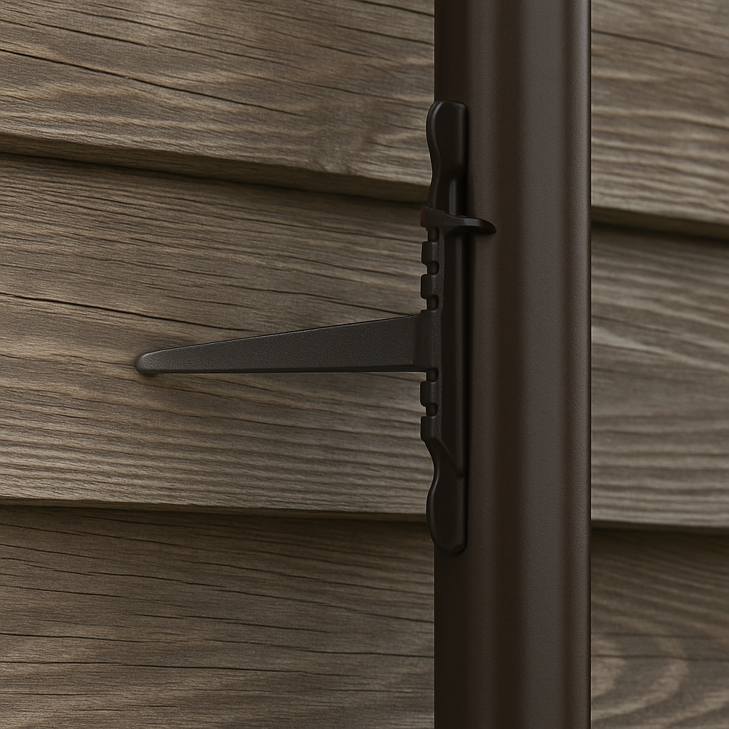 Choose fasteners based on your siding type. For wood siding use appropriate #4 or #5 Drives and wood screws, for vinyl or aluminum use self-tapping screws with #6 Drives, and for masonry use #0 Drives. Make sure all hardware is corrosion-resistant to match your Downspout material quality.